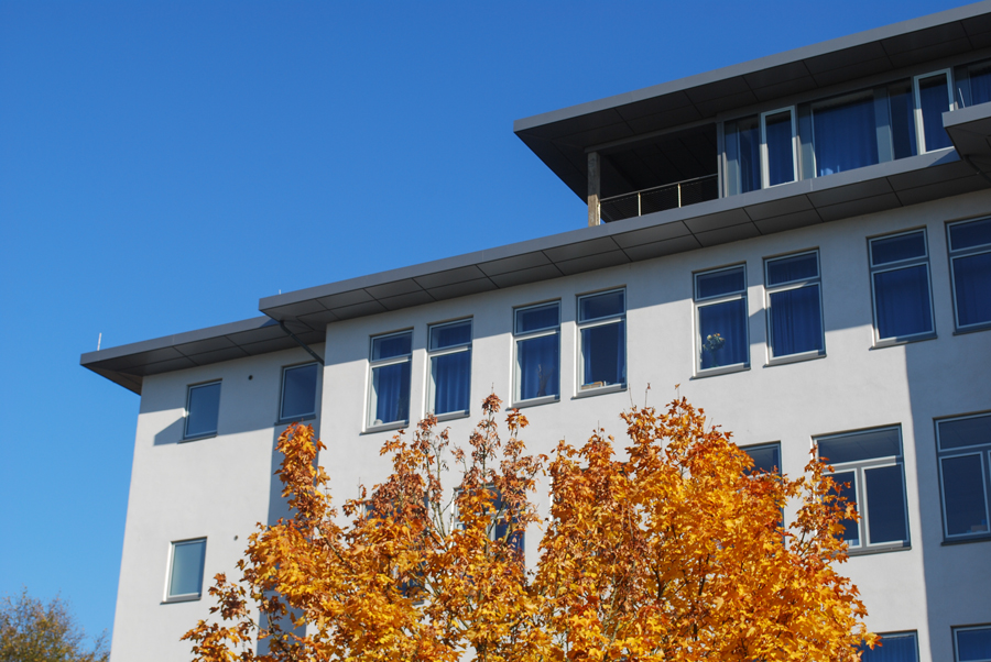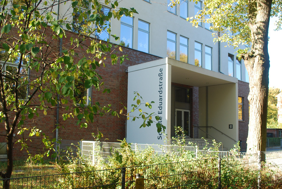Die ursprüngliche Bausubstanz von 1905 wurde im Krieg stark zerstört, in den 1950er Jahren wiederaufgebaut. Mit der Grundsanierung behielt der Baukörper seine moderne Gliederung mit Staffelgeschoss und Flugdächern. Die Materialität als Kombination aus Sichtmauerwerk und Putz ist ein Rückgriff auf die ursprüngliche wilhelminische Fassade.